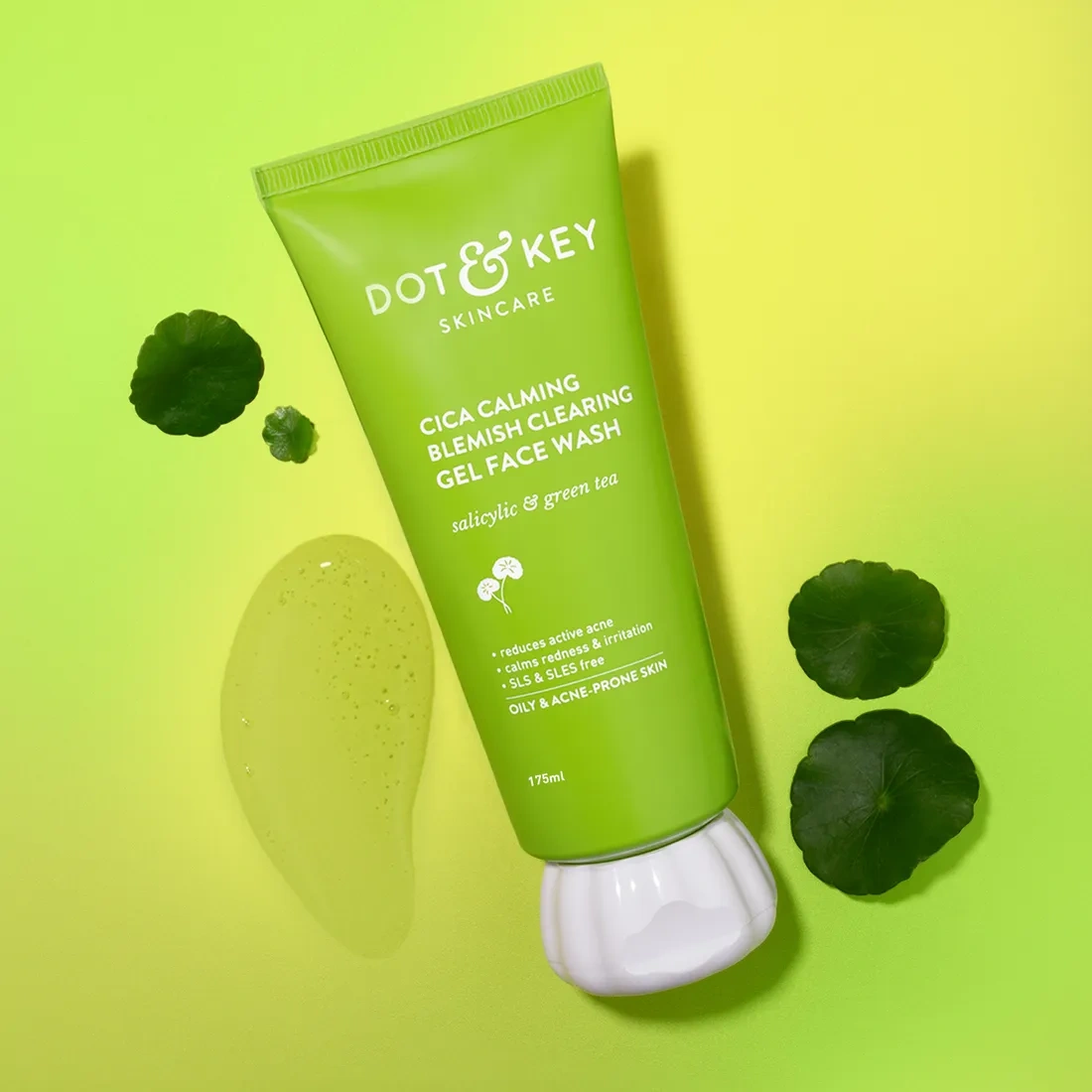 Dot & Key CICA Calming Blemish Clearing Face Wash with Salicylic Acid & Green Tea | Face Wash for Oily, Acne Prone Skin | Acne Clearing Sulphate Free Face Wash for Men & Women | 100 ml