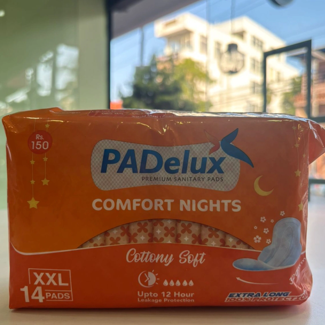 XXL Size: Our XXL pads offer ample coverage, ensuring you stay secure and protected throughout the night. Sanitary Pads: Designed specifically for sanitary needs, these pads are discreet and reliable for daily use. Comfort Nights Feature: Our Comfort Nights feature ensures a comfortable and hassle-free experience, making your nights more restful. Convenient Pack of 14: Each pack contains 14 pads, perfect for a month's supply or for those who prefer bulk purchases. Soft and Cottony Material: Experience ultimate comfort with our Soft and Cottony material, designed to provide a gentle touch against your skin.