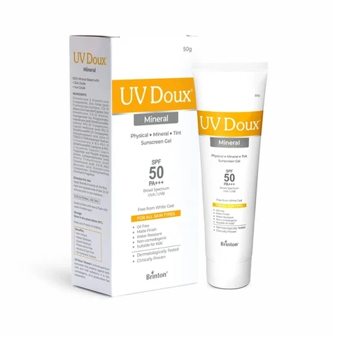 UV Doux Tinted Mineral Sunscreen SPF 50 PA+++ | No White Cast | Zinc & Iron Oxide | Water Resistant | Benzene-Free | Universal Tint for Sensitive Skin | Broad Spectrum 100% Mineral | Safe for Kids 3+ | 50 g