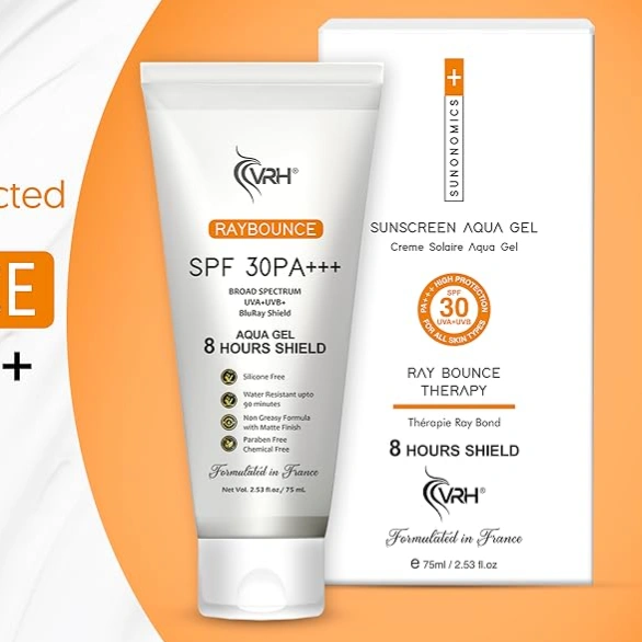 VRH Ultra Light Sunscreen Aqua Gel SPF 30 | Vitamin C + Aloe Vera + Vitamin E | Blocks UVA/UVB & Harmful Sun Rays | Provides Deep Hydration & Nourishment | Leaves No White Cast & Non Greasy (75ml)
