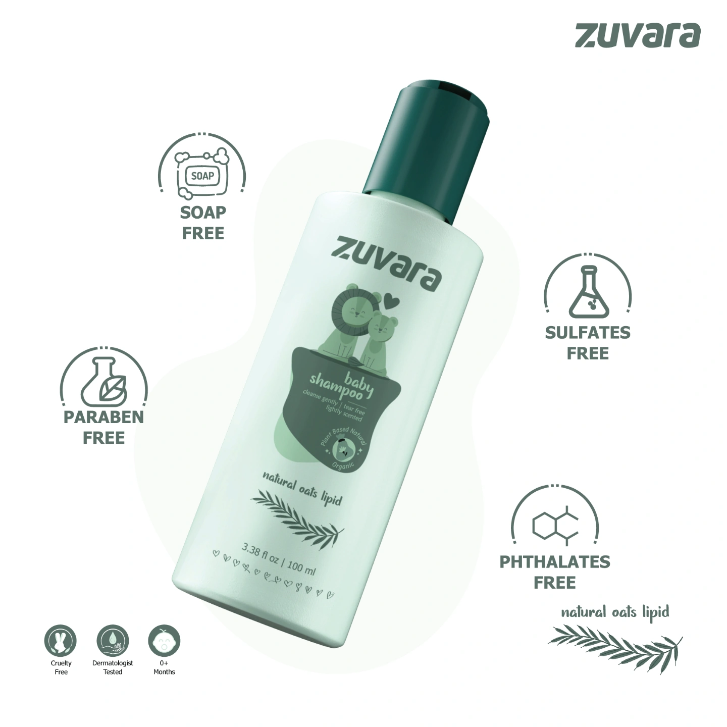 ZUVARA BABY SHAMPOO: This gentle, tear-free formula creates a rich, creamy lather that cleanses your baby's delicate hair and skin while keeping it soft and smooth.